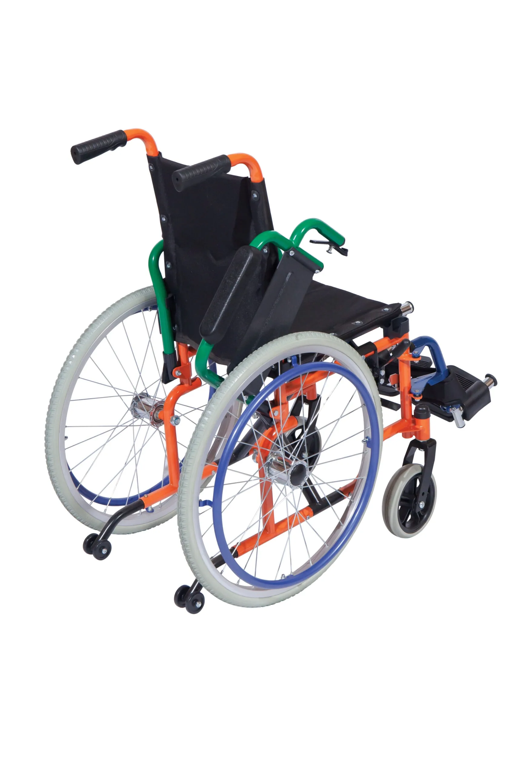 Detský invalidný vozík Rainbow je svojou konštrukciou a pestrým farebným prevedením prispôsobený detským používateľom.