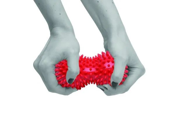 Pomôcka má tvar dvojitej loptičky s rovnomerne rozloženými pevnými tŕňmi na povrchu. Po každom použití opláchnite čistou vodou. Nepoužívajte agresívne čistiace prostriedky.