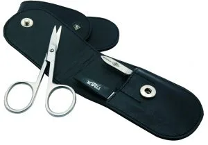 Sada pozostáva z nožníc na nechty, pilníka na nechty a pinzety. Pomôcky sú zabalené v elegantnom koženom puzdre čiernej farby.